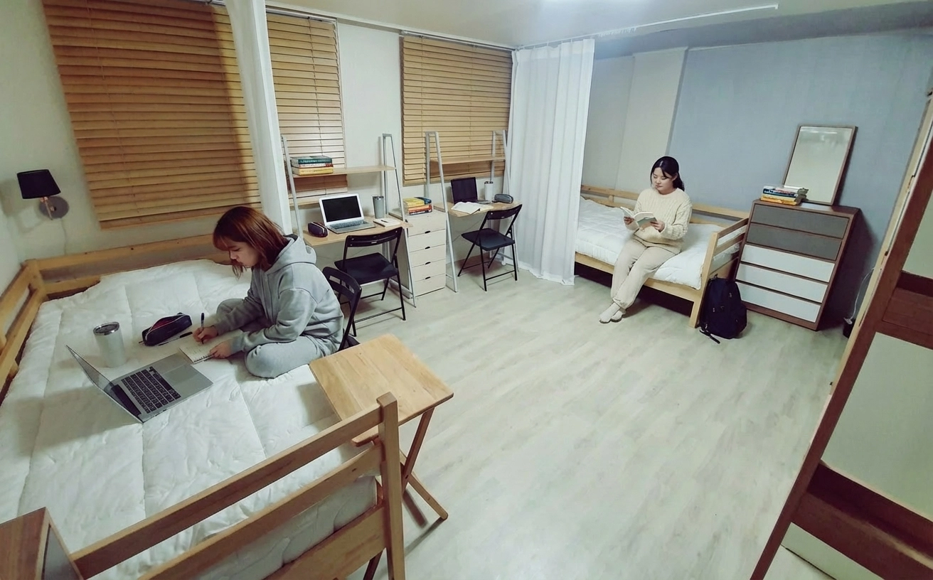 Fixed 100,000 KRW per person. Includes utilities (electricity, gas, etc.), common supplies (toilet paper, detergent, etc.), and monthly cleaning service (120,000 KRW for apartments). For details, click here