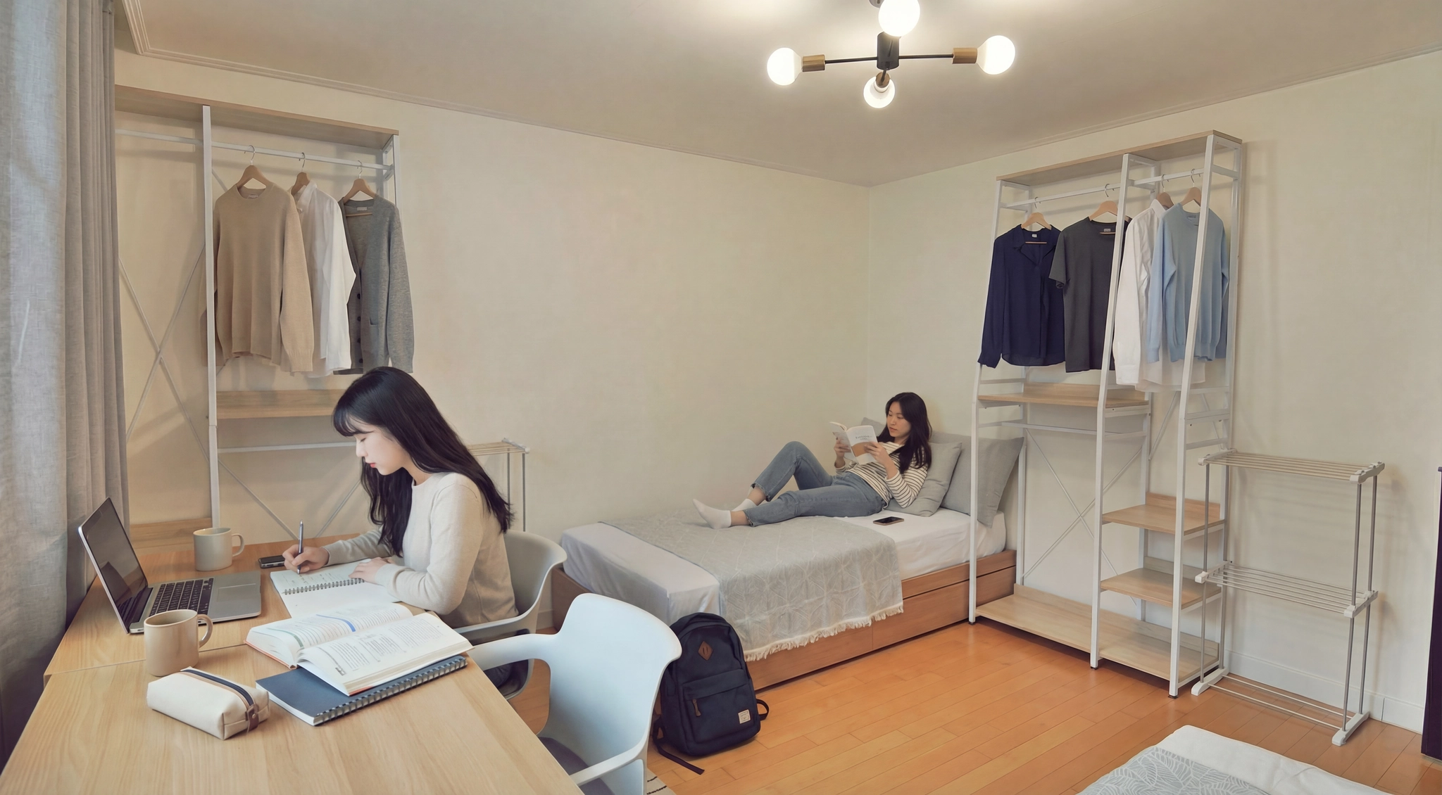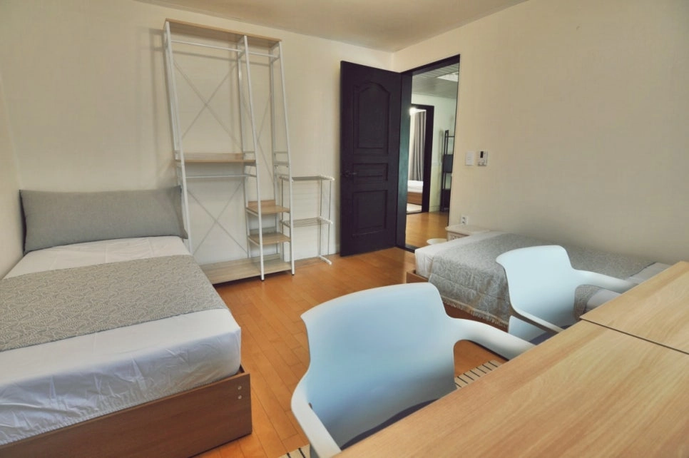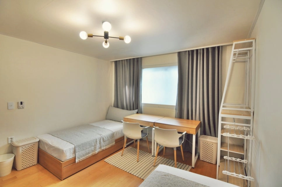 Fixed 100,000 KRW per person. Includes utilities (electricity, gas, etc.), common supplies (tissue, detergent, etc.), and monthly cleaning service (120,000 KRW for apartments). For details, click here