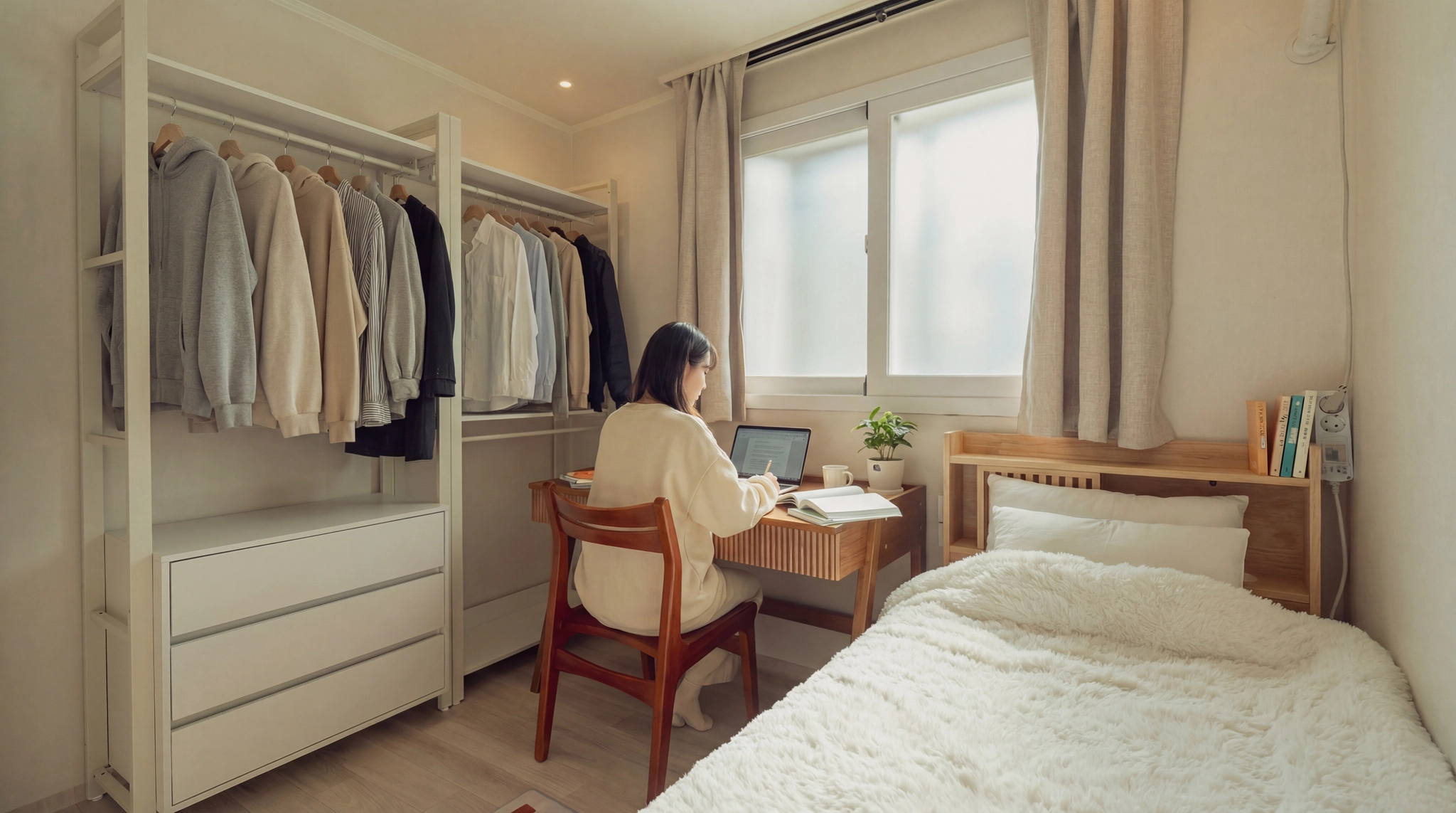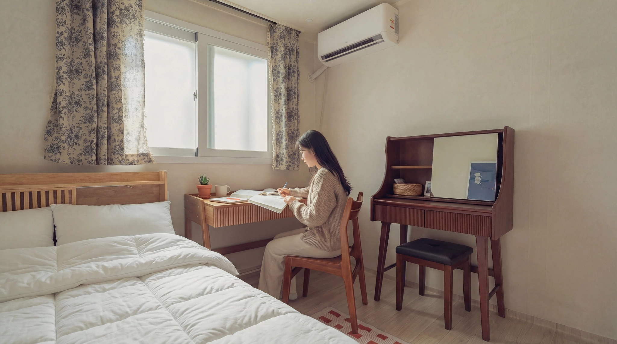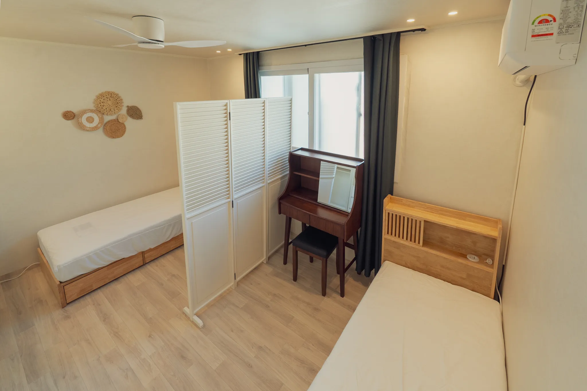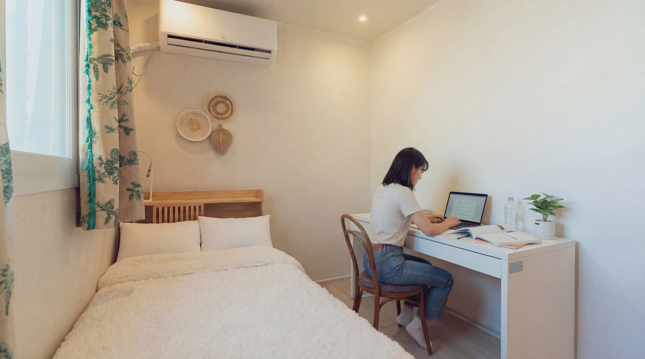 방마다 에어컨 및 모든 가구가 새제품! 쾌적하게 생활이 가능합니다