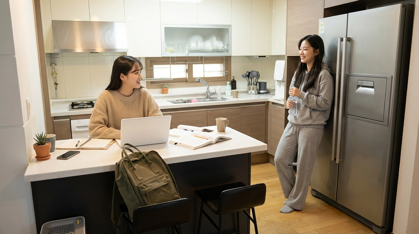 옵션 : 냉장고, 정수기, 가스레인지, 전자레인지, 세탁기, 건조기