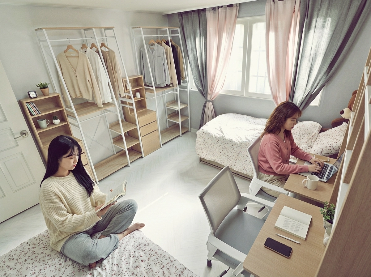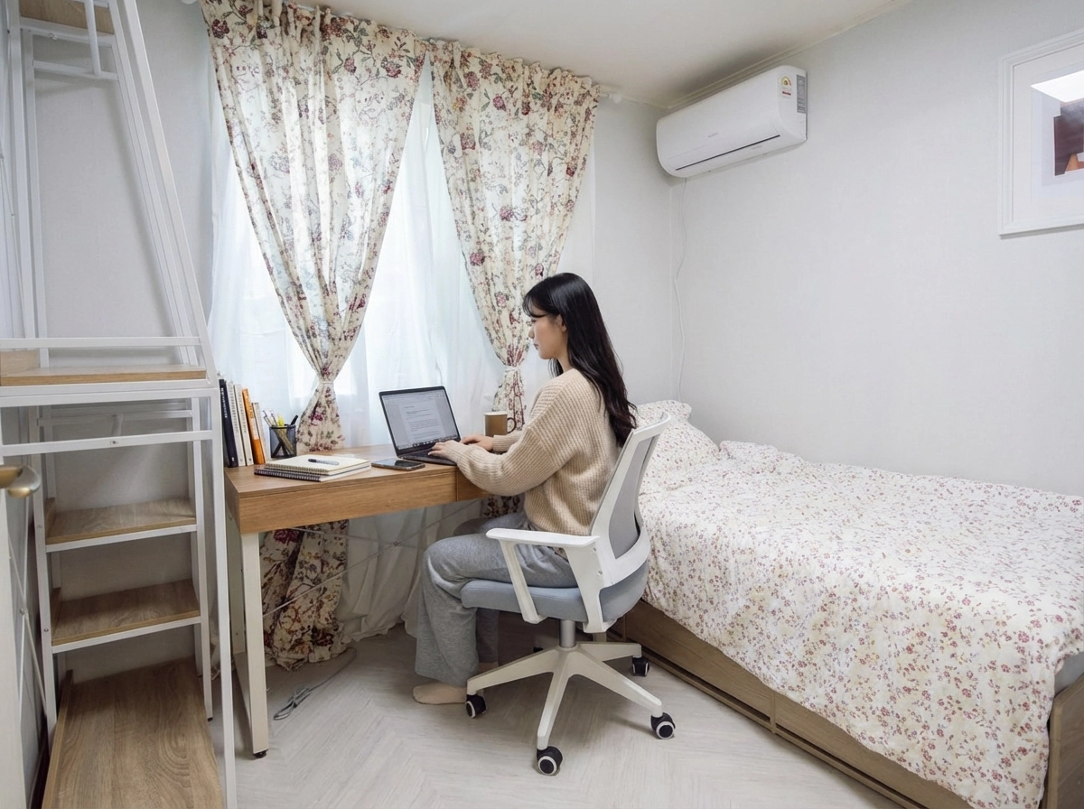 Fixed 100,000 won per person. Includes electricity, gas, and other utility bills (toilet paper, detergent, etc.) and monthly cleaning service (apartments cost 120,000 won). For more information, click here.