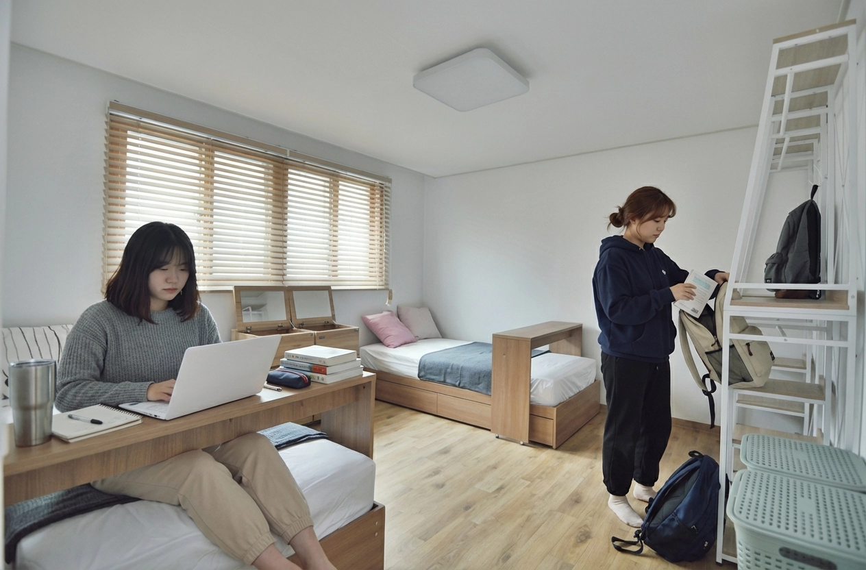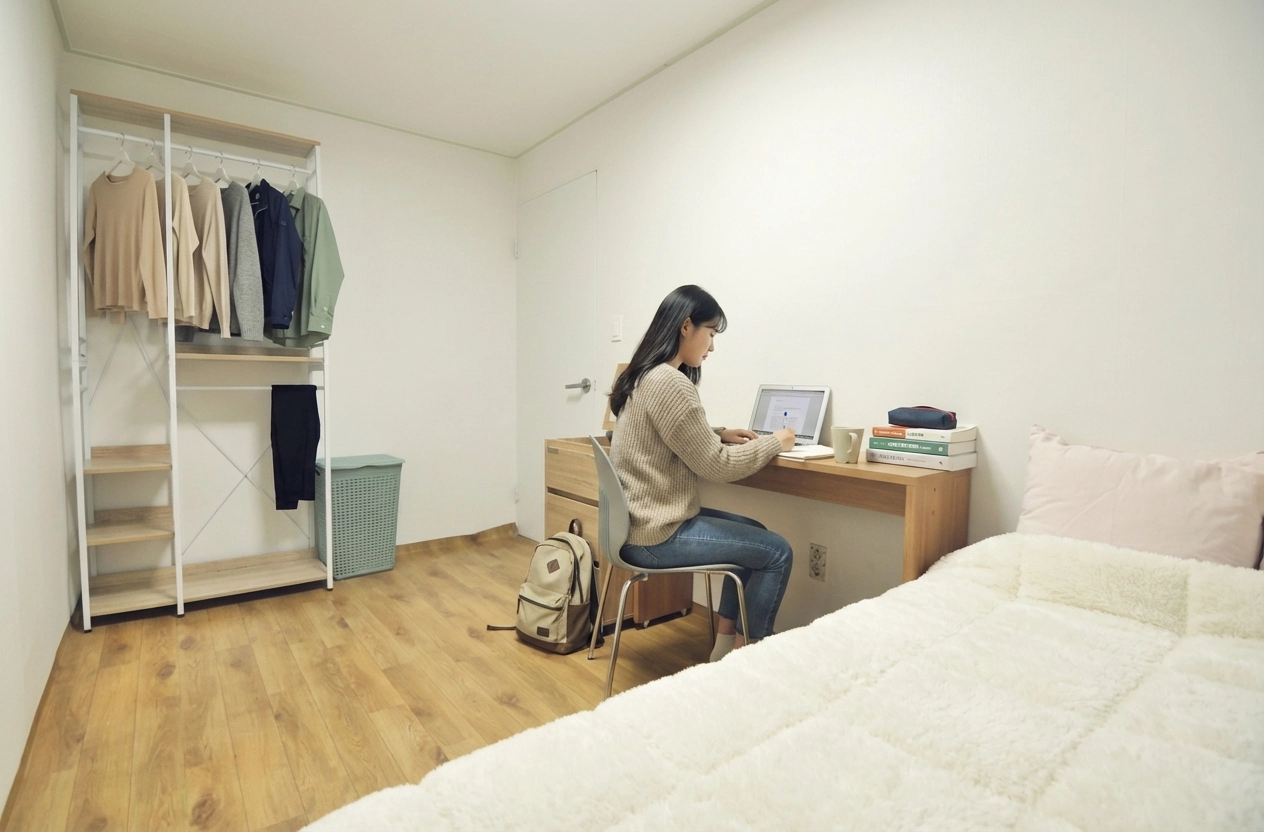 Fixed 100,000 KRW per person. Includes utilities (electricity, gas, etc.), shared items (toilet paper, detergent, etc.), and monthly cleaning service (120,000 KRW for apartments). For details, click here