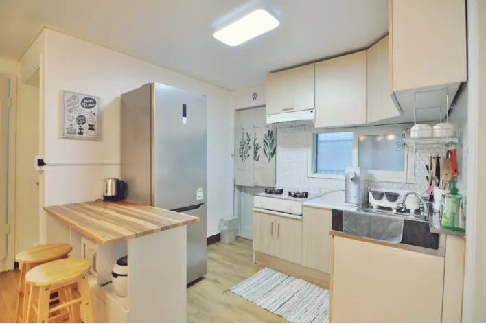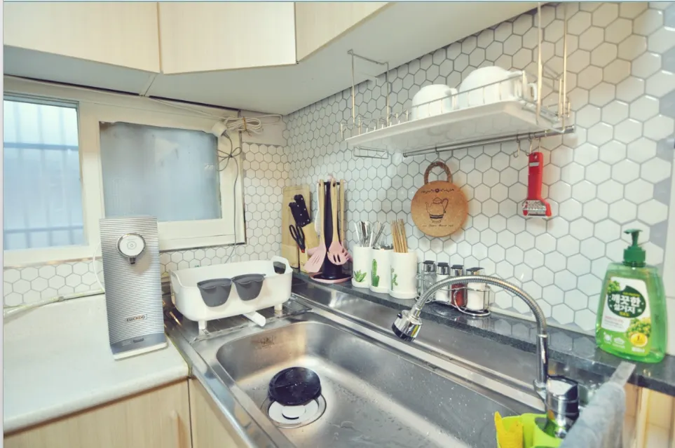 옵션 : 밥솥, 냉장고, 정수기, 가스레인지, 전자레인지, 세탁기, 건조기