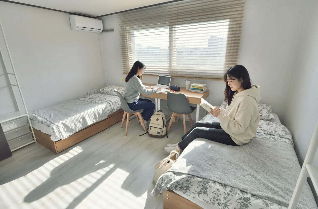 Fixed 100,000 KRW per person. This includes utilities (electricity, gas, etc.) and common supplies (toilet paper, detergent, etc.) as well as monthly cleaning service (apartments: 120,000 KRW). For more details, click here