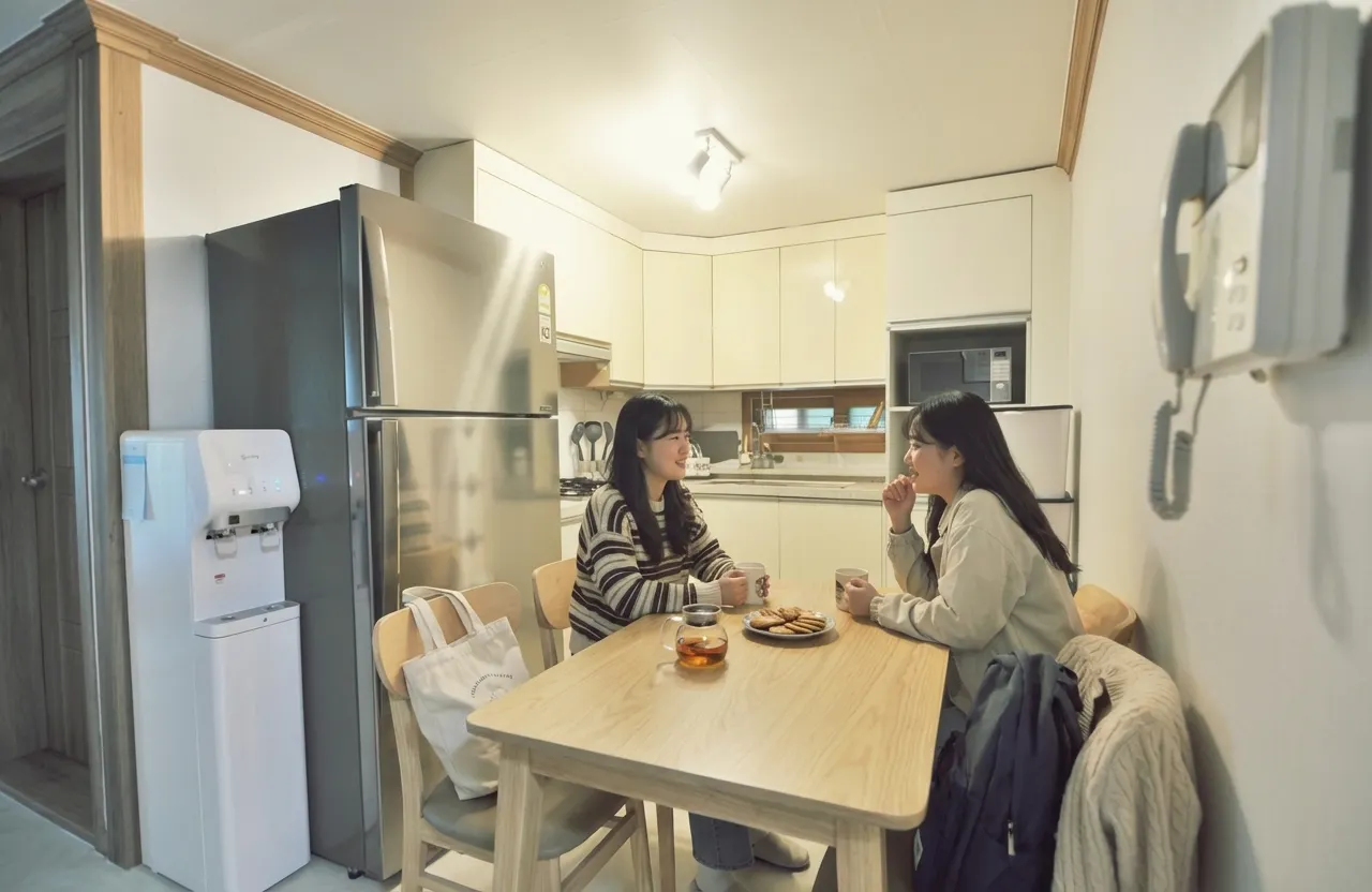 Amenities: Refrigerator, water purifier, rice cooker, gas range, microwave, washing machine, dryer