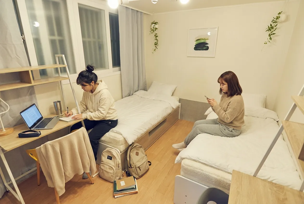 Fixed 100,000 KRW per person. Includes electricity, gas, and other utilities, as well as shared supplies (toilet paper, detergent, etc.) and monthly cleaning service (120,000 KRW for apartments). For more details, click here