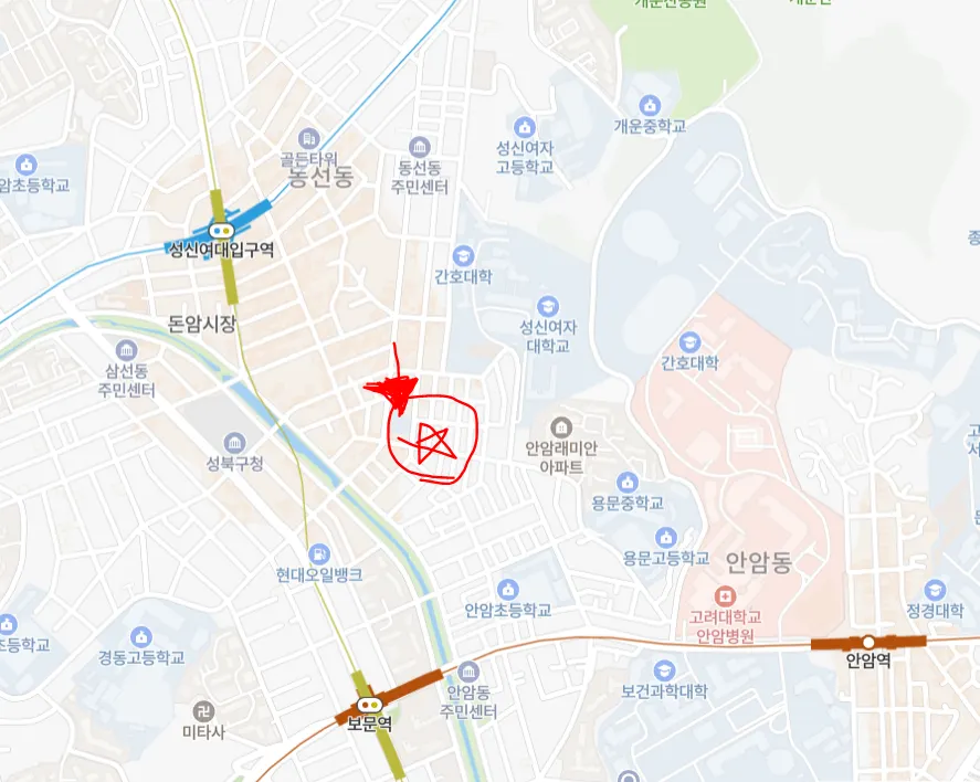 도보로 성신여대입구역, 안암역도 다닐 수 있고, 고대와도 매우 가깝습니다.