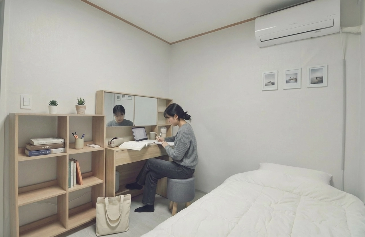 Fixed 100,000 KRW per person. Includes utilities (electricity, gas, etc.), shared items (toilet paper, detergent, etc.), and monthly cleaning service (120,000 KRW for apartments). For details, click here