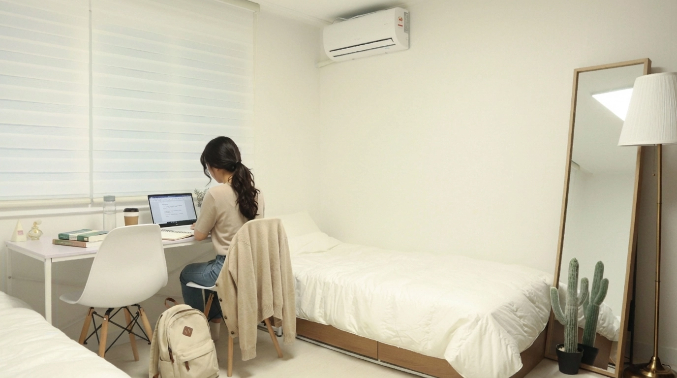 Fixed 100,000 KRW per person. Includes utilities such as electricity and gas, communal supplies (toilet paper, detergent, etc.), and monthly cleaning service (120,000 KRW for apartments). For details, click here