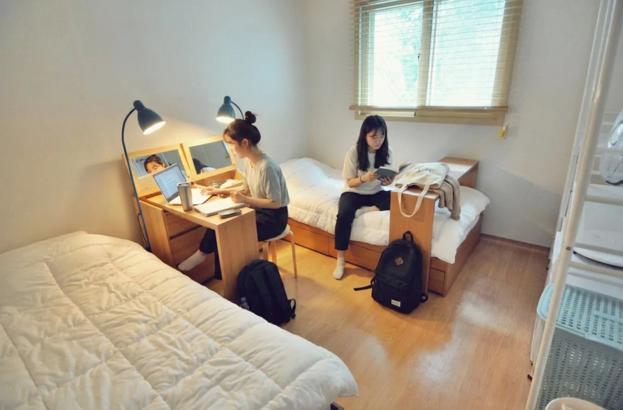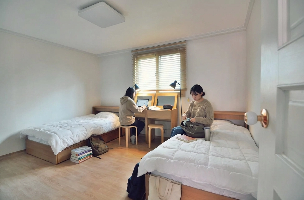 Fixed 100,000 KRW per person. Includes utilities (electricity, gas, etc.), shared supplies (toilet paper, detergent, etc.), and monthly cleaning service (120,000 KRW for apartments). For details, click here